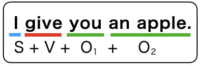 【例文】 I give you an apple.(私はあなたにリンゴをあげる。)