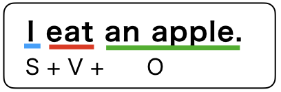【例文】 I eat an apple.(私はリンゴを食べる。)