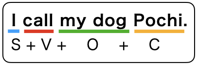 英語には S(主語)V(動詞)O(目的語)C(補語) の他に、