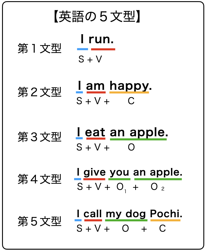 英語の 5文型 とは、文字通り「5つの文の型(パターン)」のことです。